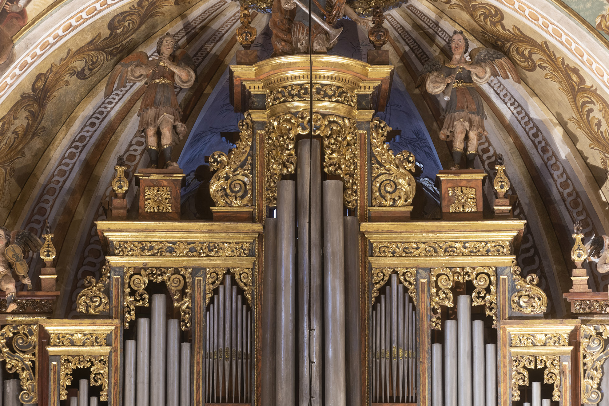 El ábside es de siete lados y cuenta con gruesos muros sin contrafuertes; se cubría con bóveda de crucería, hoy desaparecida. La nave consta de cuatro tramos; los dos primeros han perdido las bóvedas de crucería simple, conservándose las capillas laterales, cubiertas con bóvedas de cañón apuntado; los tramos de los pies, desiguales y de reducidas dimensiones, se cubren con cañón apuntado, elevándose sobre el último tramo un segundo piso.